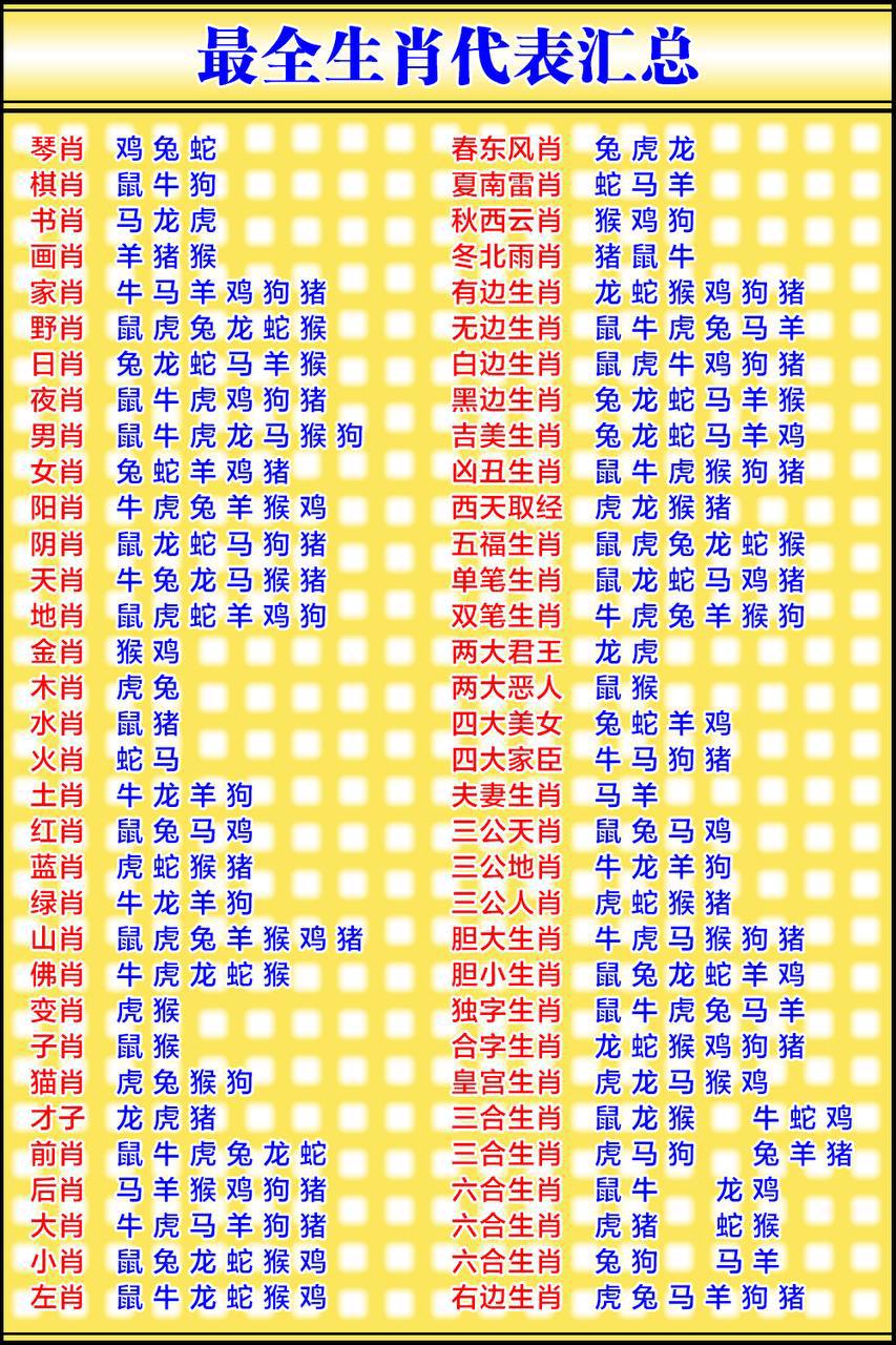 | 家禽:牛.羊.鸡.狗.马.猪 野兽:鼠.虎.蛇.兔.龙.猴 |